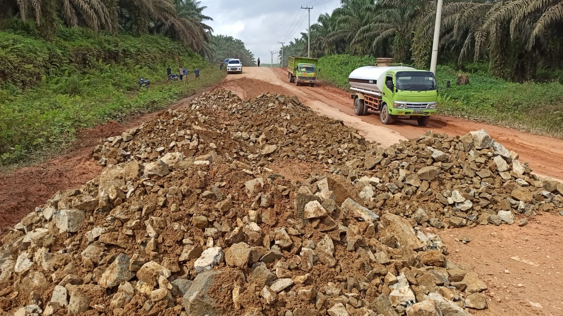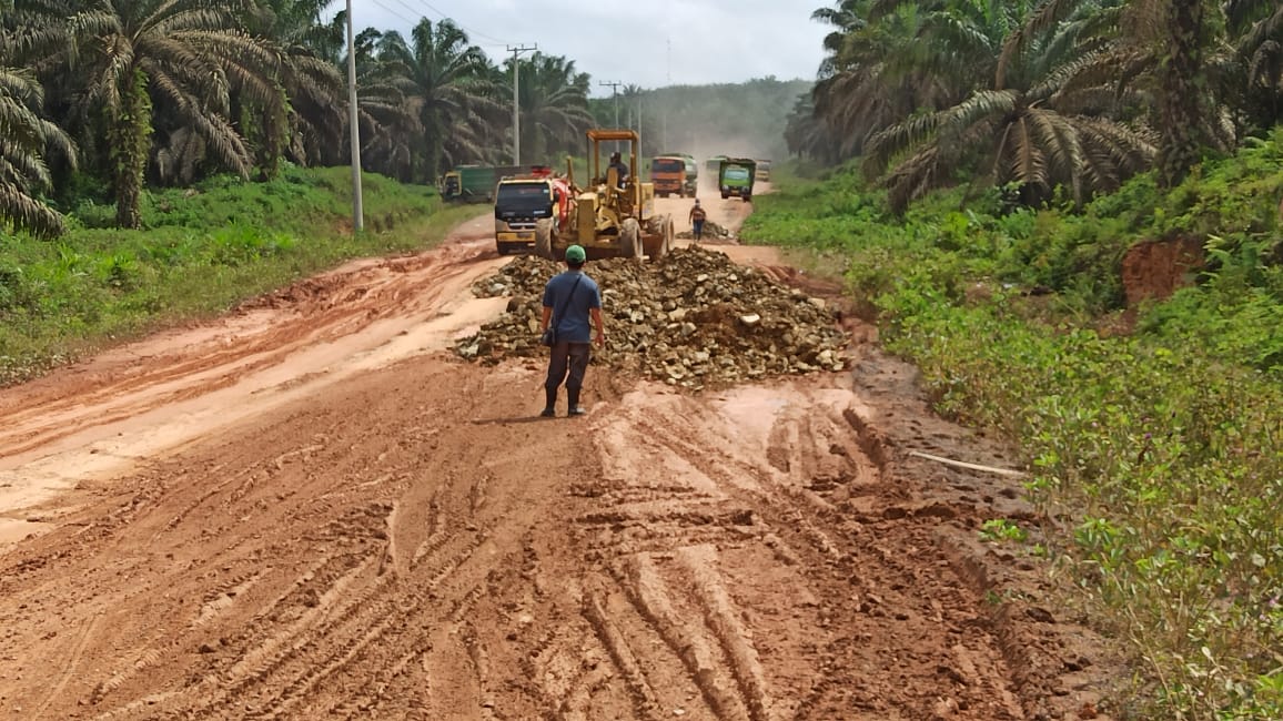 PT. Gemareksa Mekarsari yang dibantu pada pengusaha peron TBS dan Koperasi Bukit Raya Secara bergotong royong telah berhasil memperbaiki 9 (sembilan) titik kerusakan dengan penimbunan batu pecah.