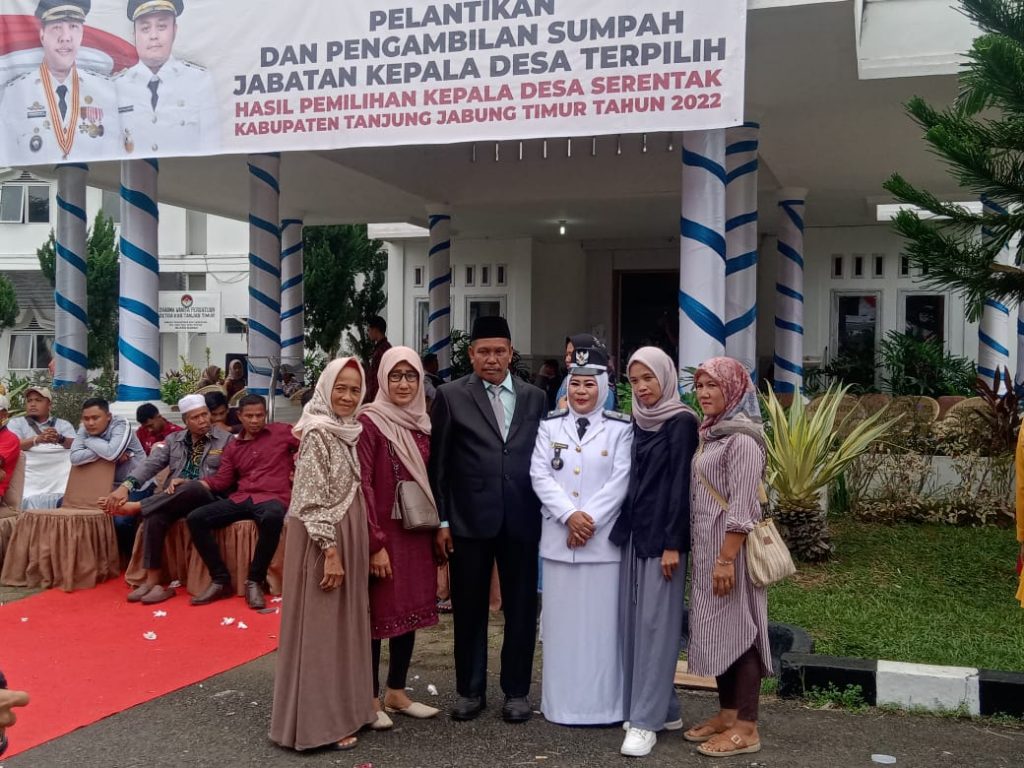 Tanjung jabung timur, Melayuposindonesia.com – Jum’at 23 Desember 2022 Ratnawati, MI. Kepala Desa Sinar Wajo Kecamatan Mendahara Ulu yang terpilih pada pemilihan Kepala Desa serentak pada 12 Oktober 2022 lalu resmi di lantik oleh Bupati Kabupaten Tanjung Jabung Timur H. Romi Hariyanto, SE. sekaligus pengangkatan sumpah sebagai Kepala Desa periode 2022 – 2028 mendatang.