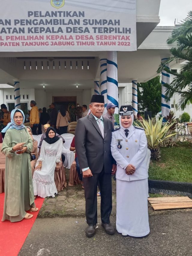 Saat pelantikan “Bupati Tanjung Jabung Timur berpesan agar para Kepala Desa yang terpilih dari Desa masing – masing sebanyak 45 desa agar saat menjalankan tugas sebagai Kepala Desa agar selalu mengayomi masyarakat, melayani dan tidak ada lagi pro-kontra antara pendukung lainnya, seperti saat sebelum pilihan Kepala Desa”paparnya.