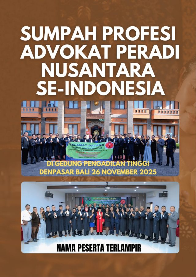 Denpasar Bali, Melayu Pos Indonesia – 28 orang advokat baru dari Organisasi Advokat Peradi Nusantara se-Indonesia menerima Sumpah Profesi Advokat yang dilakukan oleh Ketua Pengadilan Tinggi (PT) Denpasar, Bambang Hery Mulyono, S.H., M.H. digedung Pengadilan Tinggi Denpasar Bali pada pukul 09.00 wib, Rabu (26/11/2025).